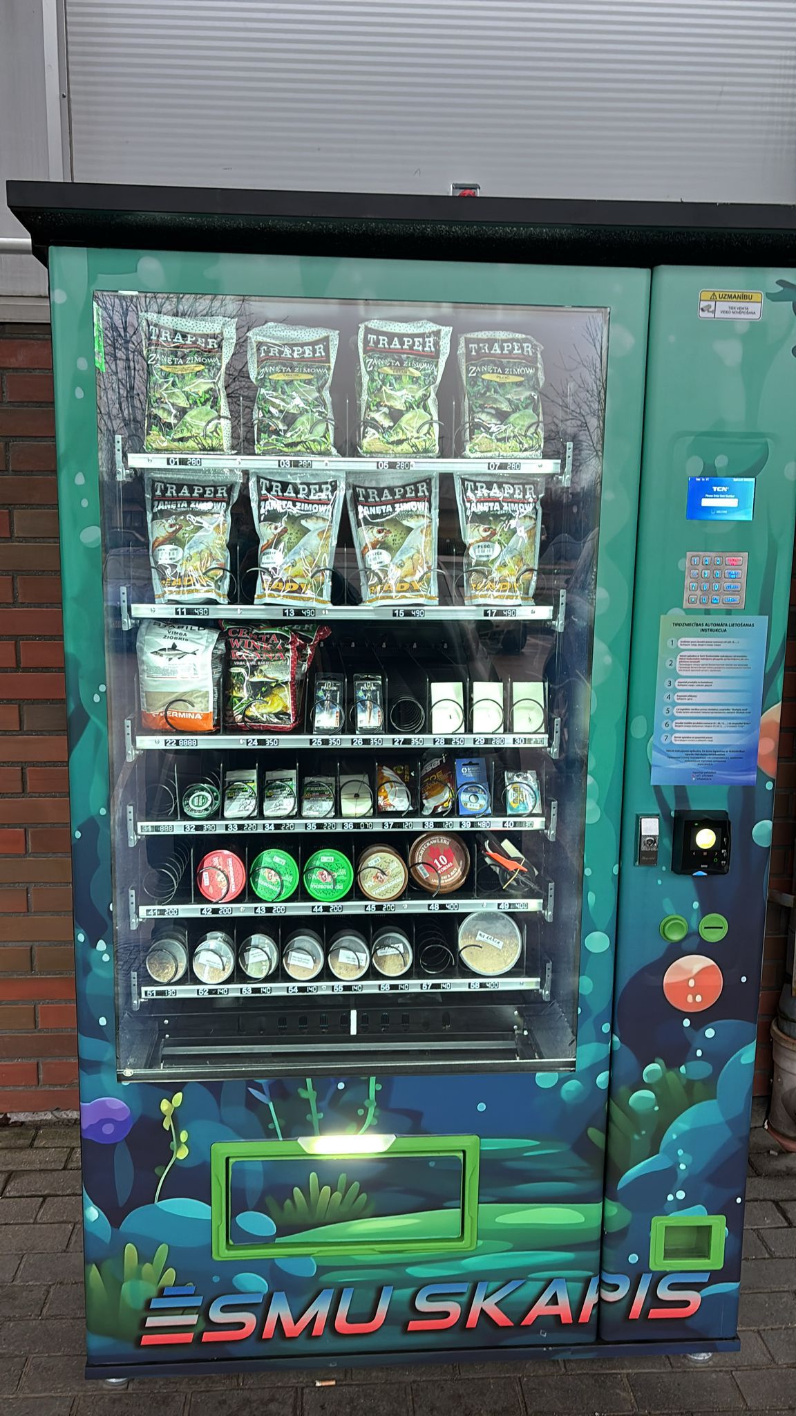 The bait cabinet is available 24 hours a day, 7 days a week. It contains food, flavorings, boilies and different types of worms.